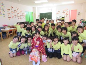 金曜日に七五三に行ったあおぐみさんとももぐみさんの姉妹が、幼稚園に見せに来てくれました![]()