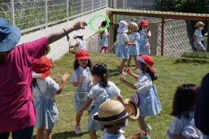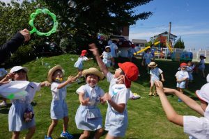 しゃぼん玉をキャッチしては「はい!1ポイント!」とお友達と競争していました![]()