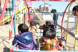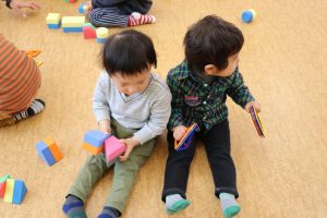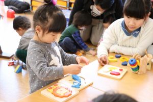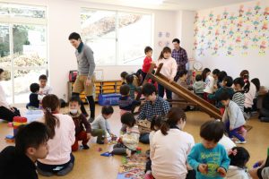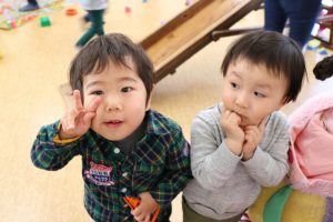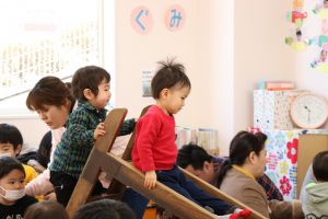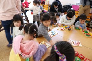 ちょっぴりお母さんやお父さんから離れるのがさみしくなっちゃった子もいましたが、同じ園舎にいるとわかると安心したのか、先生たちと遊ぶことができるようになっていました![]()