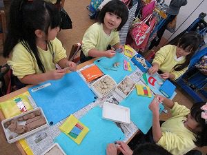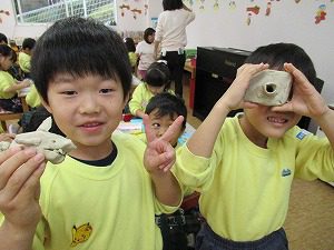 粘土では、、カタツムリを作ったり、バラを作ったり、カメラやサメを作ったり、各々作るものが違って個性が出ていて見ている方もとても面白かったです![]()