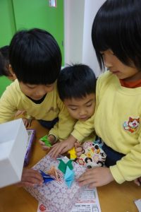 さて、今日はあおぐみさんは紙相撲をして盛り上がっていました![]()