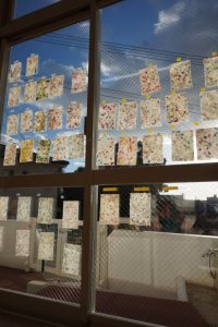 それを型に流して、ギュッと水けをきって窓に貼り付けて乾かします![]()