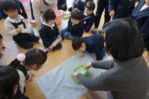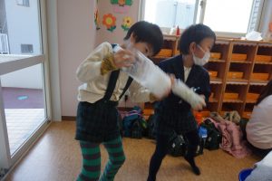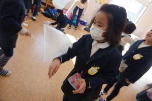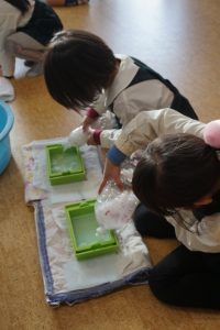 子どもたちは外に張っていた氷をとってきれいと嬉しそうに眺めていました![]()