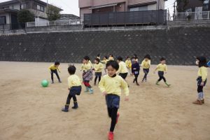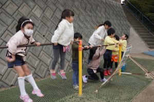 今回はお外遊び中の火事を想定して避難訓練を行いました