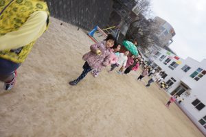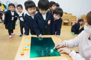 お外遊びでたまたま先生とカーリングの話をしていたあおぐみさんは、おお喜びで、ルールがわかるとみんなまたまた大盛り上がり