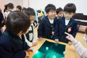 造形教室では今話題の『カーリング』に似たゲームをしました