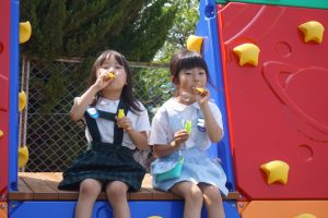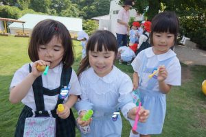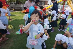 そして造形教室ではお外でシャボン玉をして遊びました![]()