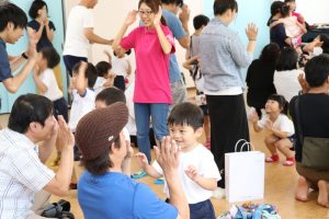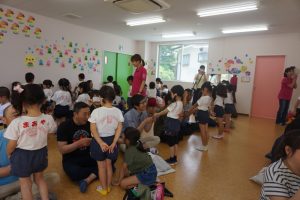 午前中のおともだちは初めての参観日という子もいたので少し緊張した雰囲気でしたが、お歌のプレゼントもとってもかわいく歌うことが出来ていました![]()