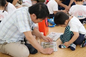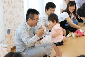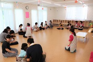 午前中のおともだちは初めての参観日という子もいたので少し緊張した雰囲気でしたが、お歌のプレゼントもとってもかわいく歌うことが出来ていました![]()