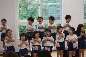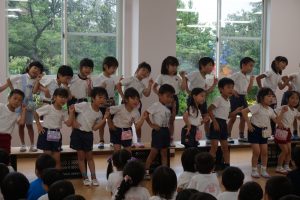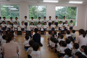 みんなおうちの人に見せるお歌を練習したり、おみこしをつくったり、夕涼み会を心待ちにしています