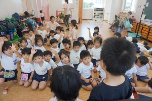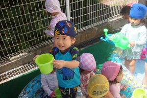 お誕生日のおともだちがいたのでお誕生日会をしたり、わらべうた遊び(はないちもんめ)をしたり、久々のプールに入ったり、撮影があったりと色んなことがありました![]()
