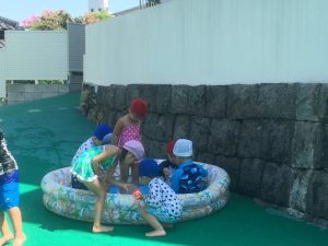 今日は土曜日!土曜日に来ているお友だちが午前中にプールに入っていましたよ!