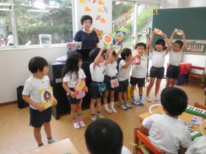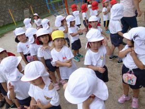 今日はあおぐみさんがうえの園庭でコウロギを捕まえていましたよ![]()