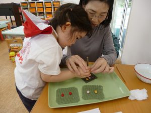 自分たちで好きな色を選んで、最後に乗せる飾りも選んで、ピンセットで乗せました![]()