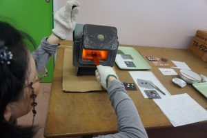 といっても夏休みの間から、下地をのせて、窯に入れて焼いて、磨いて・・・と今日取り組むまでに様々な工程があります![]()