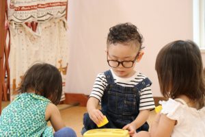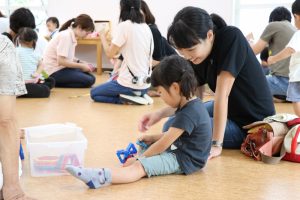 作ったもので遊べる時間をと思っていたのですが、みなさんとても熱心に作ってきただき、とても賑やかでかわいらしい作品が出来上がりました![]()