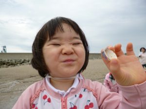 潮が引いてさほど時間が経っていないのか、まだ砂浜に水分があり、貝以外にもカニやエビがたくさんいました