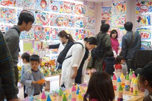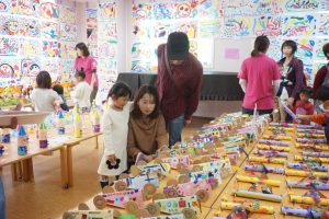 作品と一緒に写真を撮ったり、実際手に取って遊んでみたりして、家族で楽しい時間を過ごしていただきました