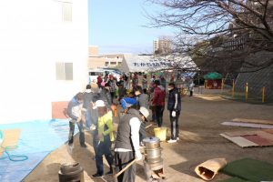 朝早くからたくさんのお父さん・お母さん方がお手伝いに来てくださり、釜に火を焚いてくれたり、おしるこを作ってくれました![]()