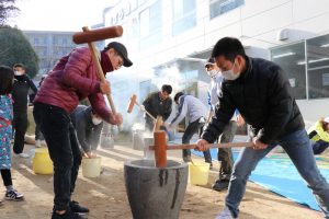 今日はとっても良いお天気のなか、2学期最後の行事のお餅つきが行われました![]()