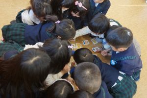 初めは楽しんでいた子どもたちも、カード欲しさにもう眼の色を変えて一生懸命絵を覚えようとしていました![]()