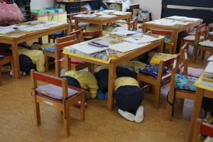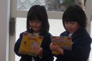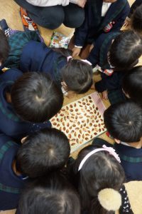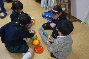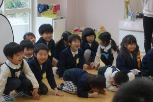 教室に飾っているお雛様の前で、みんなも変身してお写真を撮りたいと思います![]()