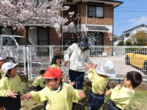 みんなきれいな花びらを拾ってケーキをつくったり、フ~っと吹いて遊んだりと春を楽しんでいます![]()