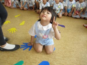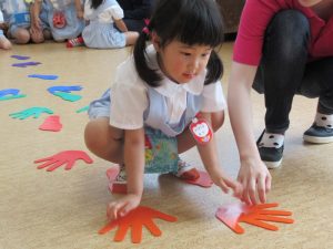 手の形のところには手を、足の形のところには足を・・・・・・