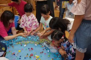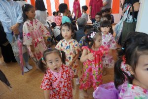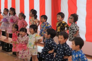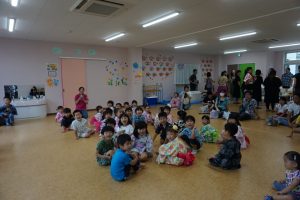 あいにくの雨でしたが、みんなかわいいお洋服や浴衣、甚平などを着て来てくれたので、お祭りらしく華やかな雰囲気になりました![]()