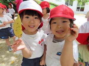 さて昨日は幼稚園に珍しいお客さんがイチョウの木の下にかくれんぼしていました![]()