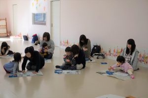 まずはお家の人と一緒に好きな絵を選んで色塗りをしました![]()