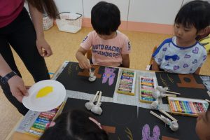 のりと水を入れる前の、マラカスの状態も楽しかったようで、シャカシャカ鳴らして遊ぶ様子も見られました![]()