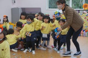 今年の豆まきはコロナということもあり、毎年全クラス合同で行っていたものをクラスごとに分けて行いました![]()