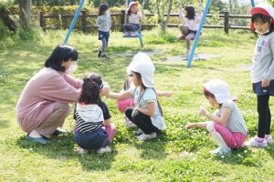 ブランコをしたり、お花で冠を作ったり・・・![]()