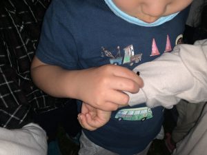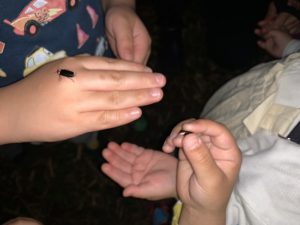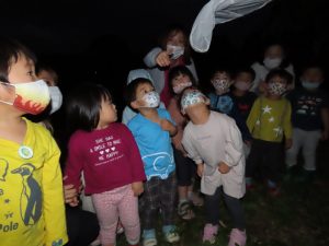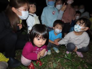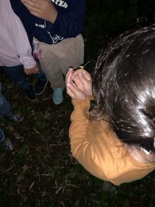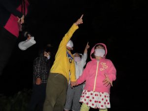蛍を見るところについてしばらくはまだ明るかったので「何もいないね~」と少し残念そうな子どもたちでしたが、「あ!いた!」の一声でみんなの目がキラキラに変身