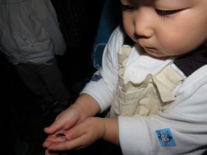 おててに乗せたり、お洋服に止まったり、ほたると一緒に楽しい時間を過ごしました