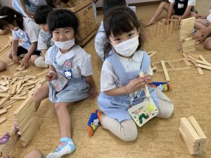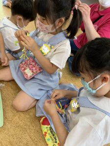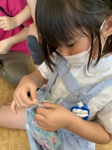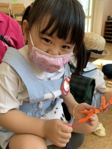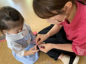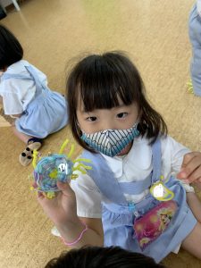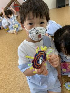 編み編み… 2022年06月08日 今日の造形教室は、毛糸を編み編みしました 色んな色の毛糸を選んで、交互に編み込みましたよ 集中しないと間違えちゃいそうですね みんなみてみて 見せにきてくれて、最後の仕上げにお星様をつけていました