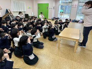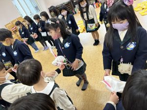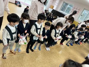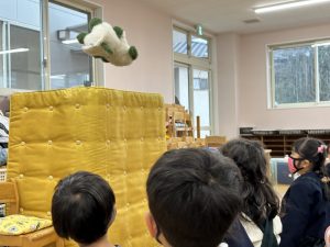 みんなでプレゼント交換をしたり、あおぐみさんにお礼のプレゼントを渡したり、先生たちの出し物を見たりしました✨