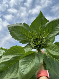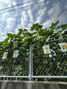 ひまわりはご覧になりましたか?咲いてはいませんが、お花の蕾も大きくなり、高さは子どもの2倍くらいにまで伸びました‼️