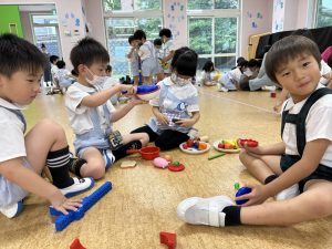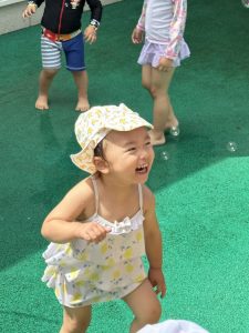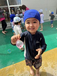 あかぐみさん、ももぐみさんはシャボン玉したり、水風船で遊んだりもしたね❣️