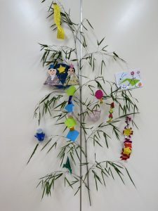 今日は園長先生がとってきてくれた笹と、七夕飾りを持ち帰りました