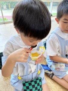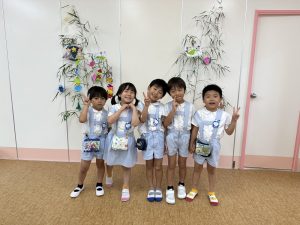 今日は園長先生がとってきてくれた笹と、七夕飾りを持ち帰りました