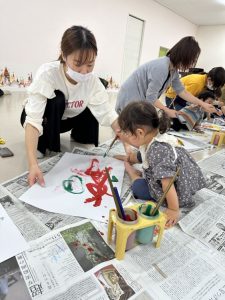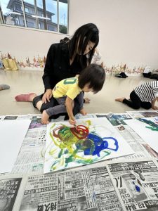 今日はふれあい遊びをしたり、絵本をみたり、大きな画用紙に絵の具で絵を描いたり、色んなことをやりました✨✨絵を描くのは大盛況で、ダイナミックにのびのびと描いてくれました!!楽しかったね❤️