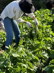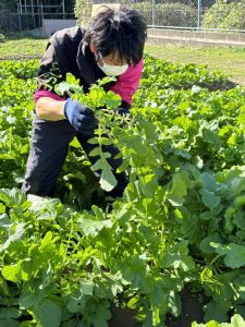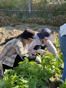 みなさんよーく葉っぱをみたり、土からちょっと頭を出した大根をじっくり観察して間引いてくださいました。