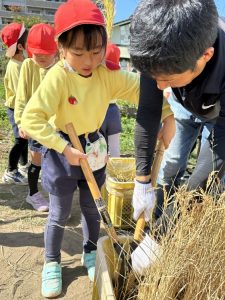 木曜日は、保護者の方を招いて畑のお手伝いをしていただきました。