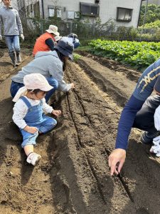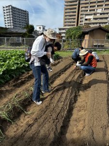 みんなで畑にほうれん草と玉ねぎを植えました!!