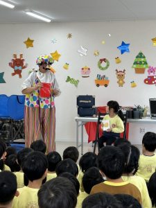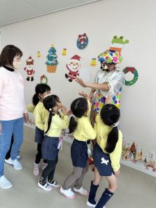 そして6日には、幼稚園のクリスマス会にサンタクロースとピエロのピーちゃんが遊びに来てくれました!