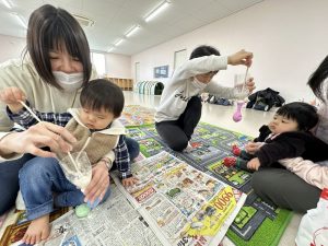 手触りが気持ちよくて、お母さんたちもムニムニしながらおしゃべりしていました。
