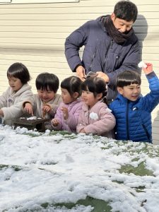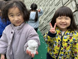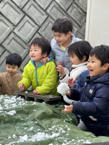 幼稚園に着いてからは雪遊び‼️‼️雪合戦をしたり、雪だるまを作ったりして盛り上がりました♬