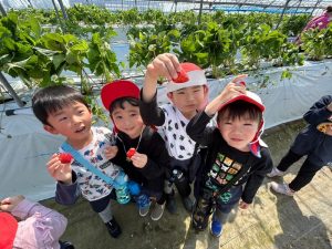 と真っ赤ないちごを手の中にたくさん持って、新たな目星をつけてるお友だちも😁